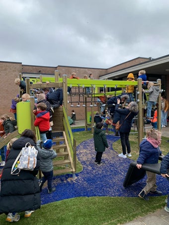 Sinds februari 2024 bruist onze speelplaats van nog meer plezier! Dankzij het oudercomité kunnen de kinderen nu glijden, klimmen en klauteren op een gloednieuw speeltuig.